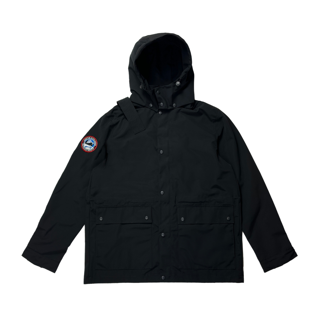- Фирменный элемент — погон на плече — отсылка к арктическому стилю и экспедиционному прошлому бренда.