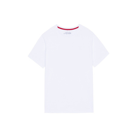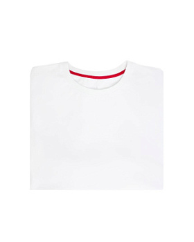 - Оформление горловины — круглый вырез с внутренней отделкой красного цвета добавляет легкий визуальный акцент.