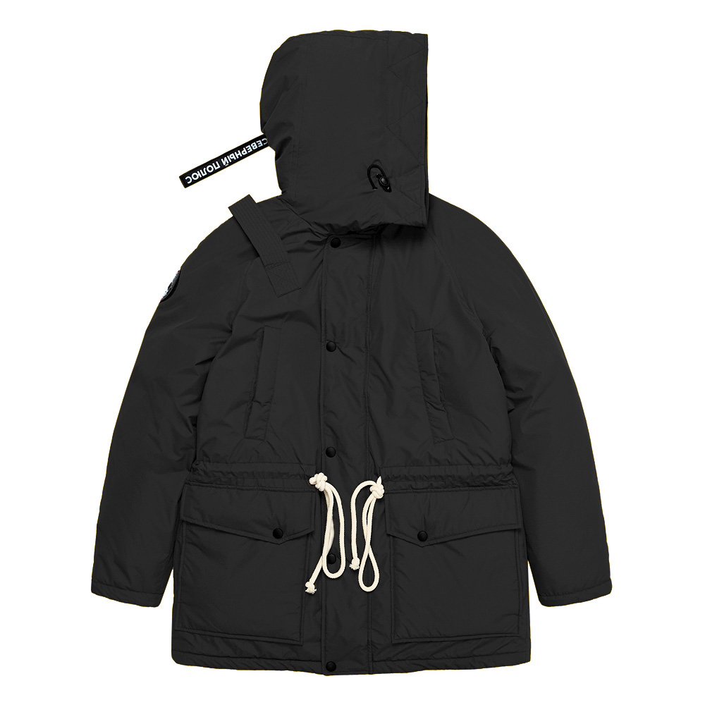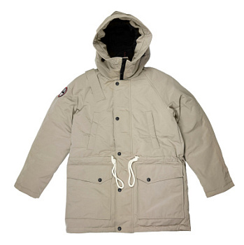 - Фирменный декор: съемный шеврон «Аrctic Explorer» на рукаве, погон на одном плече, повторяющий настоящие полярные погоны, нашивка «Северный полюс» на хлястике капюшона, декор из натуральной кожи.